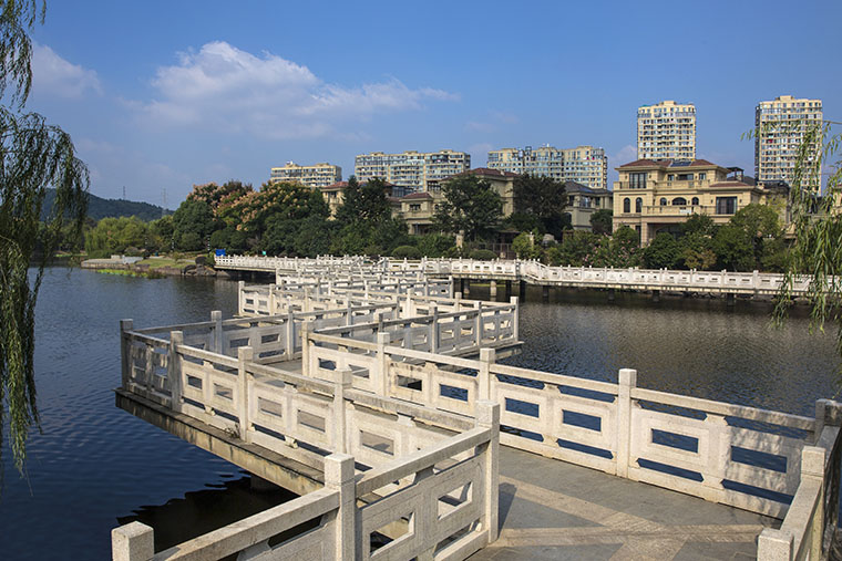 1沿老长乐堤内侧景观工程,面积49280平方米,九曲桥一座。