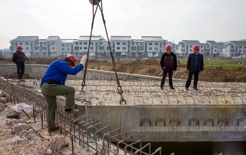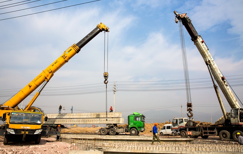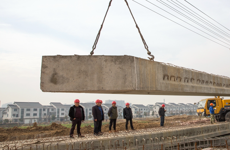 1. 本公司承建的嵊州经济开发区时尚产业园市政配套工程(浦南大道浦南二路——浦南五路)景观工程施工正如火如荼地进行中。公司领导和项目经理十分重视该工程的每一个施工环节,以确保施工质量和工期时间。(图为公司领导、项目经理、技术负责人等在桥梁板安装施工现场)。